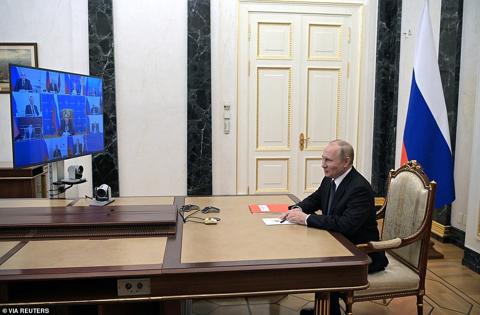 Putin told a meeting of intelligence officials from the CIS group of ex-Soviet countries that the West was 'pumping' Ukraine with heavy weapons, adding: 'There are also plans to use a so-called 'dirty bomb' for provocations.'