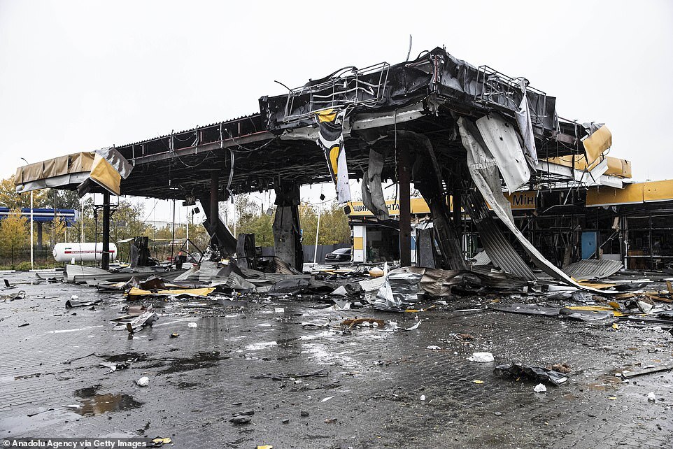 A view of the damaged gas station after the Russian missile attacks in Dnipro, Ukraine