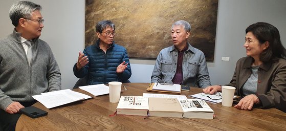 『해방 전후사의 인식』을 극복하기 위해 개항 150주년이 되는 2026년『개항 전후사의 인식(가칭)』출간을 목표로 연구 모임을 하고 있는 서래포럼 회원들. 왼쪽부터 김종민 변호사, 최진덕 전 한국학중앙연구원 철학 교수, 최범 디자인 평론가, 김은희 한국학중앙연구원 전임연구원(문화인류학). [장세정 기자]
