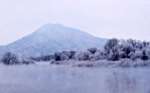 © 제공: 서울신문 중부지역을 중심으로 한파특보가 이어지는 16일 강원 춘천시 소양강에 물안개와 상고대가 피고 있다. 2022.12.16 연합뉴스