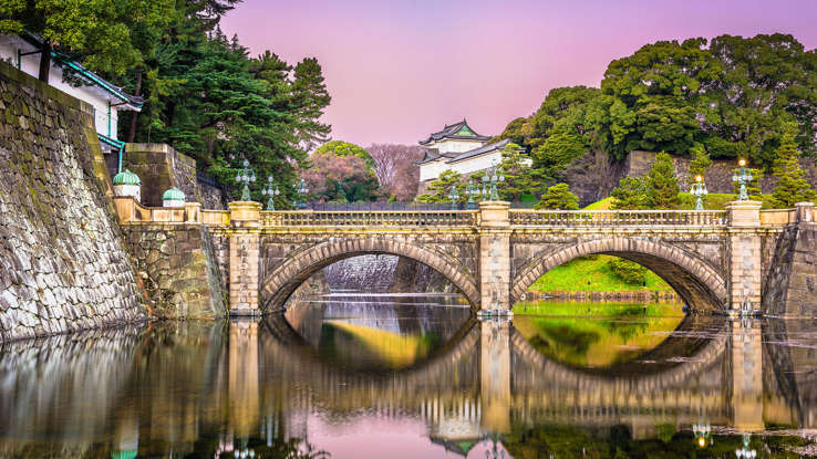 도쿄 지요다 옛 에도성이 있던 터에 자리한 황거는 일본 황실의 공식 거처입니다. 해자와 거대한 돌담으로 둘러싸인 궁은 건물과 다리가 있어 큰 공원 같은 분위기를 자아냅니다. 궁은 제2차 세계 대전 중에 한 번 파괴되었다가 이후 같은 모습으로 재건되었습니다. 앞에 있는 돌다리는 생긴 모습 때문에 메가네바시(안경다리)라고 불립니다.