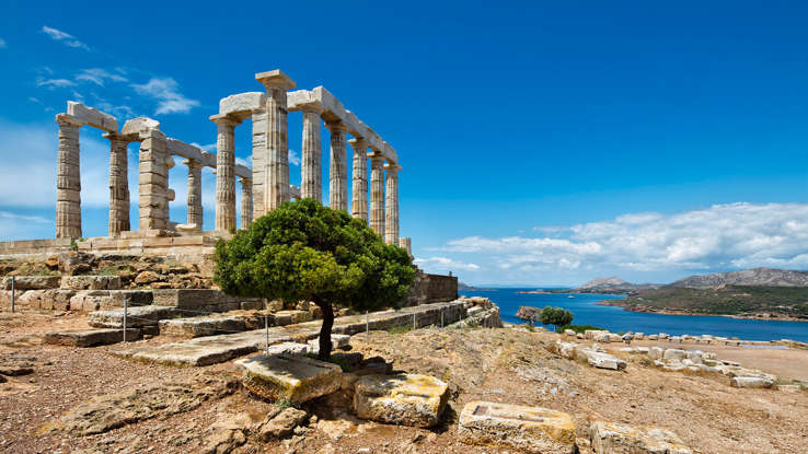 기원전 444~440년에 지어진 이 고대 그리스 신전은 바다의 신 포세이돈에게 바쳐졌으며 수니온 곶에 자리잡고 있는 아테네 황금기의 주요 기념물 중 하나입니다. 험준한 절벽 위에 위치한 신전은 수니온 곶의 끝에서 바다를 내려다보고 있습니다.