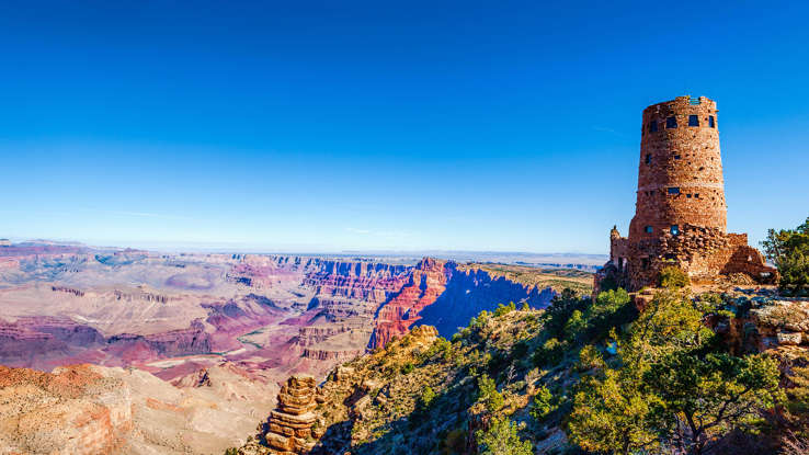 사우스 림에서 가장 유명한 구조물로 꼽히는 워치타워는 먼 거리에서도 눈에 띕니다. 1932년에 지어진 워치타워는 국립 역사 유적지로 알려져 있습니다. 워치타워에서는 그랜드캐니언 동쪽 영역의 경관을 색다르게 감상할 수 있습니다. 유네스코 세계유산 지구로 지정된 그랜드캐니언 국립공원은 코코니노와 모하비 카운티 내 통합되지 않은 지역 493,270헥타르(1,218,896에이커)에 펼쳐져 있습니다.