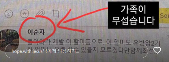 해당 메시지에는 “돌아와라. 제발. 이 할미 품으로. 이 할미도 유방암 2기라 얼마나 오래 살 수 있을지 모르겠다만 함께 최선을…”이라는 내용이 담겼다.