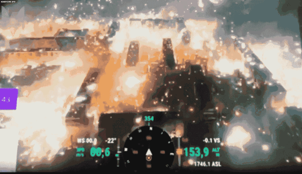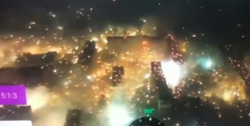 드론으로 촬영된 이 영상을 보면 도시 곳곳이 빛으로 번쩍인다. 곳곳에선 크고 작은 폭발과 함께 연기가 치솟는 모습도 포착된다. 공중에선 소이탄 잔해로 추정되는 섬광이 비처럼 흩뿌려져 내려오고 있다. 또 다른 영상엔 빌딩 인근이 화염에 휩싸인 모습이 담겼다.