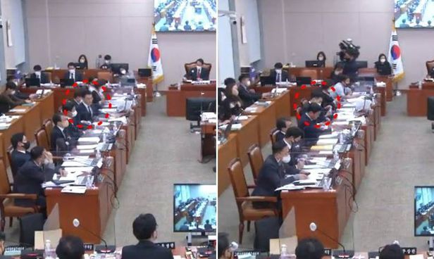 자리에서 사라졌던 김 의원은 그로부터 약 38분 뒤 다시 회의장에서 확인된다. 20여분 뒤 김 의원은 한 장관에게 한 차례 더 질의를 시작한다. 이때 휴대전화는 책상 위에 올려졌다.