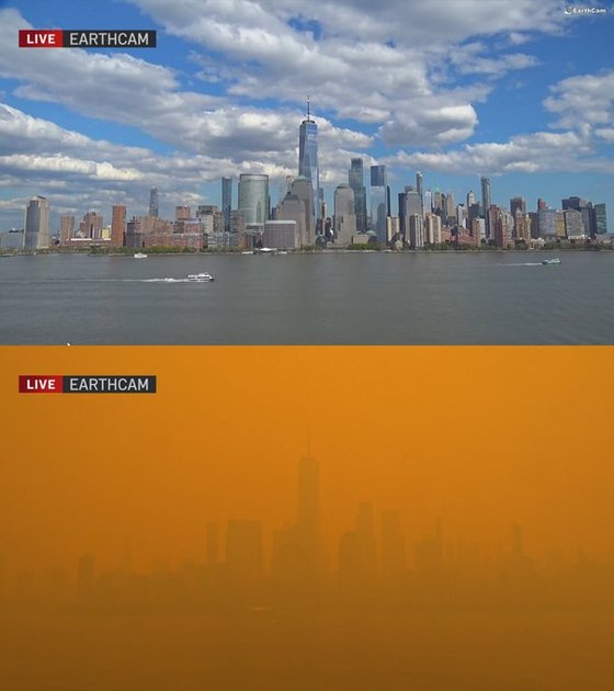 미국 기상청(NWS)의 기상학자 마이크 하디먼은 이날 뉴욕타임스(NYT)에 "마치 화성을 보는 것 같다"며 "대기에서 담배 냄새가 난다"고 말했다. 뉴욕의 하늘이 세기말을 다룬 영화의 한 장면처럼 누렇게 변해버린 건 지난달부터 캐나다 동부 퀘벡주(州)를 중심으로 발생한 산불이 수 백 곳으로 확산하는 과정에서 미국 동부까지 연기가 밀려온 탓이다.