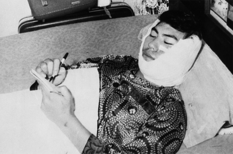 ▎1972년 음료수병 피습을 당한 나훈아가 병실 침대에 누워 있다.