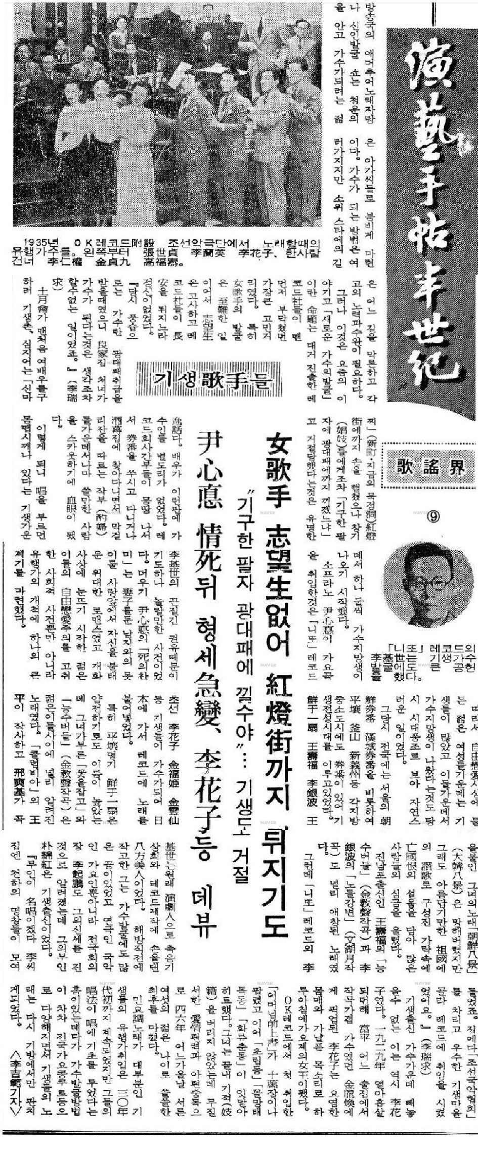 여자가수를 찾기 어렵던 시절에 평양기생출신