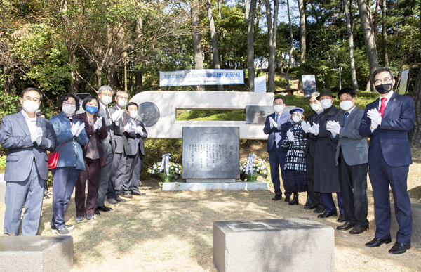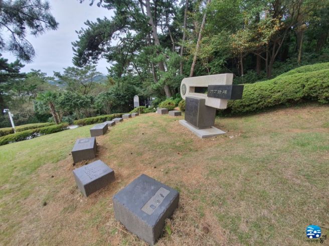 통영문인협회는 지난 10월 30일 오전 남망산 공원에서 강석주 시장, 손쾌환 의장, 강근식 도의원, 김미옥, 배윤주, 이승민 시의원, 유족 김훈정 장녀, 강기재 통영예총지부장, 문인 등 50여 명이 참석한 가운데 남망산 공원 양지바른 언덕에서 이전 제막식을 가졌다.