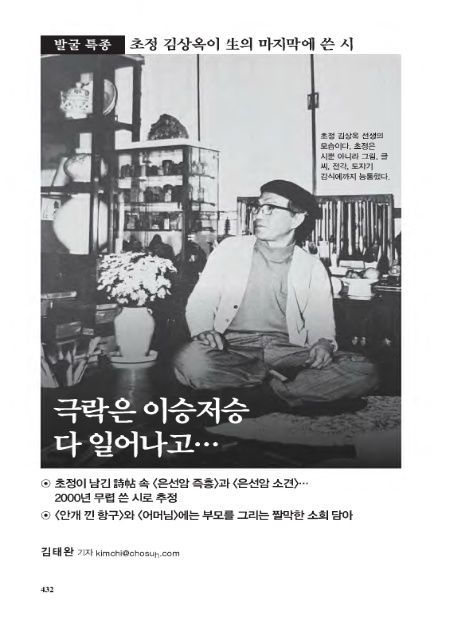 초정 김상옥이 生의 마지막에 쓴 詩 ‘극락은 이승저승 다 일어나고…’