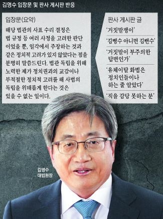 “물러나 인권법 두목이나 해라” 김명수 사과에 판사 조롱글