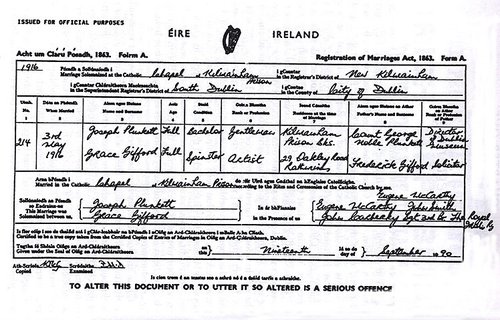 Acta de Matrimonio de Grace Gifford y Joseph Plunkett Grace Gifford y Joseph Plunkett 결혼 증명서 |
