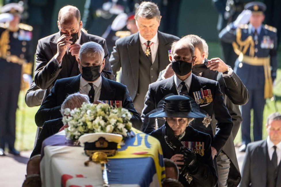 Under bright blue skies, the eight-minute procession then began, led by Prince Charles and Princess Anne, the duke's two eldest children.