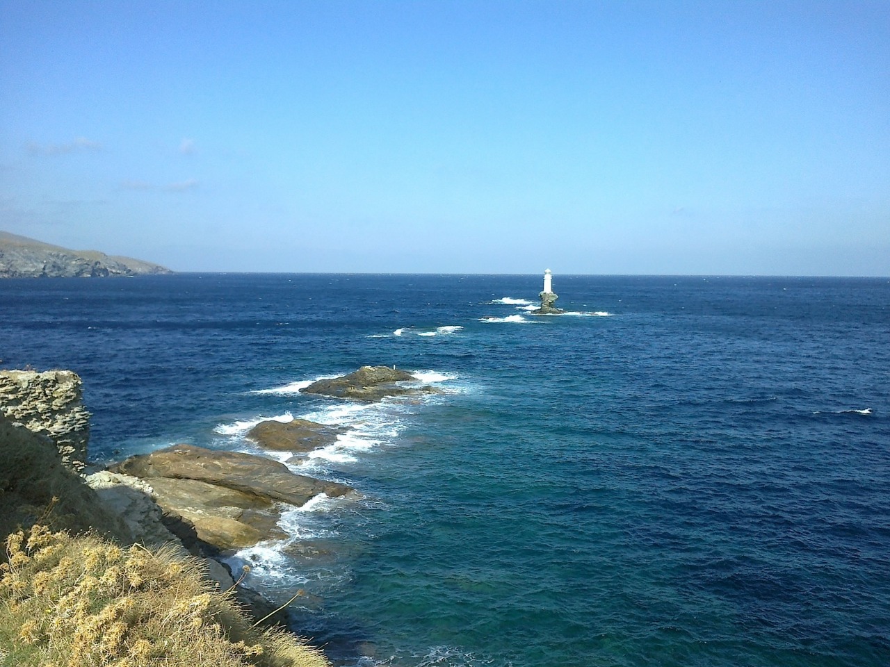 Tourlitis Lighthouse in Chora on Andros island, Cyclades, Greece