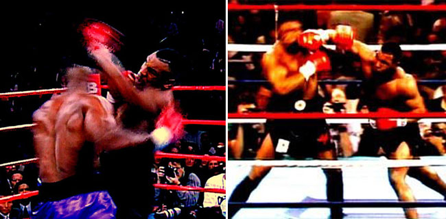 삽시간에 낭자한 선혈(鮮血)이 링 위에 뿌려졌다. 타이슨은 입술을 우물거리다 홀리필드의 한쪽 귀 살점을 뱉어냈다. 홀리필드는 극심한 고통에 절규했다. 주심은 흥분한 타이슨에게 “한 번만 더 귀를 물게 되면 실격패를 선언하겠다”고 경고했지만 소용없었다. 타이슨은 3라운드에도 홀리필드의 왼쪽 귀를 물어뜯었던 것이다. 타이슨은 여기서 그치지 않고 수세에 몰린 홀리필드를 막무가내로 공격했다. 양측 관계자와 경찰들이 몰려와 간신히 싸움을 말렸지만 비극은 이미 시작되고 있었다. 타이슨은 이른바 ‘핵이빨’이라는 오명을 자초한 당시 사건 발발로 유력 스폰서와의 계약이 끊어졌다. 스포츠계의 ‘비(非)매너남’으로 찍혀 세간의 지탄까지 받았다.
