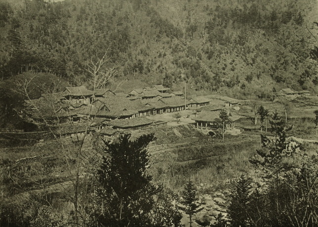 금강산 유점사의 예전 모습. 6 ·25전쟁 때 모두 소실돼 현재는 터와 석탑만 남아 있다.