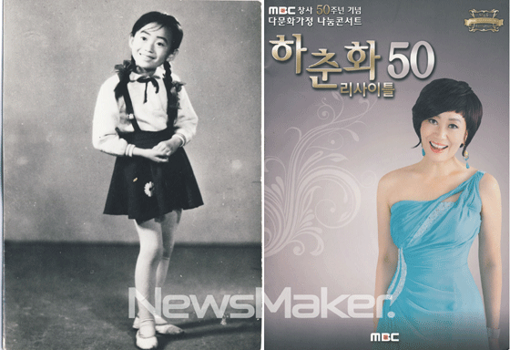 ▲ 하춘화(1955년 6월 28일생)의 1961년 데뷔시절 사진과 ‘하춘화 50년 리사이틀(세종문화회관, 2011년)’ 부클릿 표지