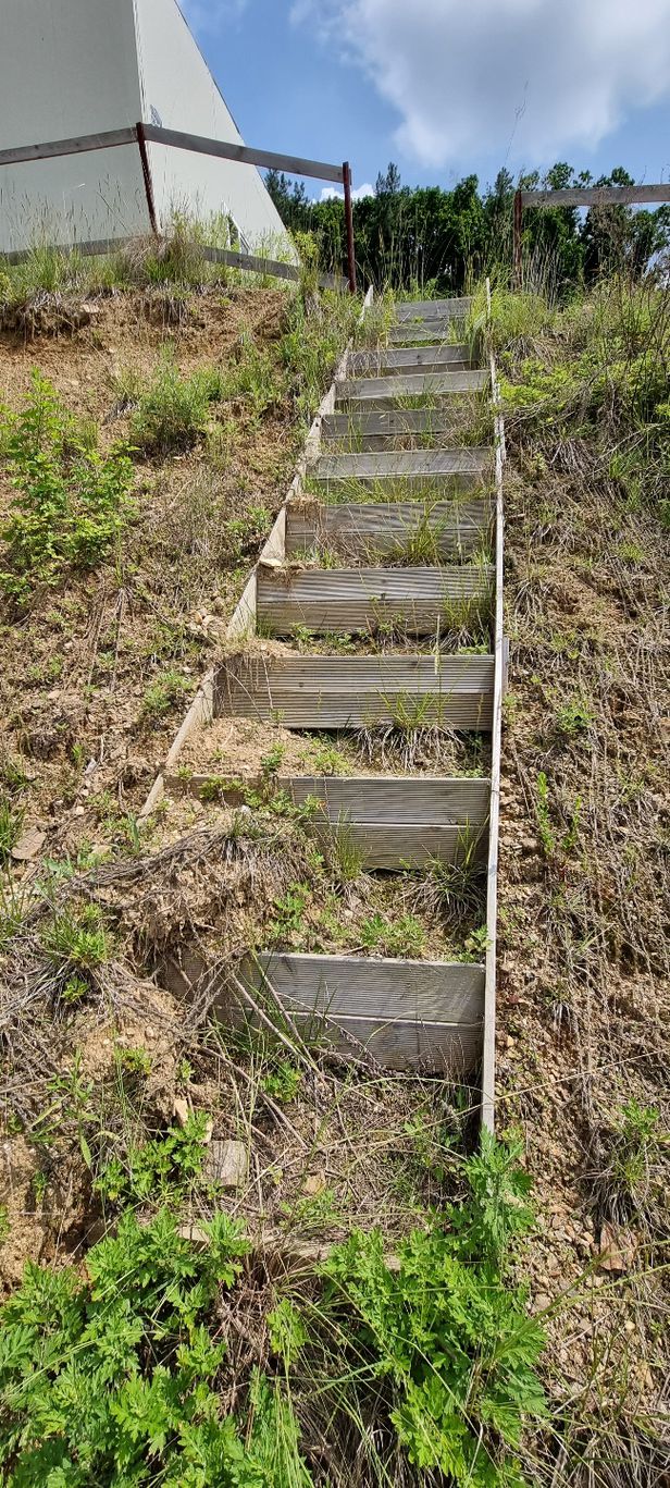 김기표 전 청와대 반부패비서관이 '상가'로 신고한 경기 광주시 송정동 조립식 건물로 가는 입구 계단의 28일 오후 모습. 김 전 비서관은 이 계단 위에 조립식 건물을 세워놓고 상가로 신고한 뒤 해당 땅의 지목을 '임야'에서 값비싼 '대지(집터)'로 변경했다./남지현 기자