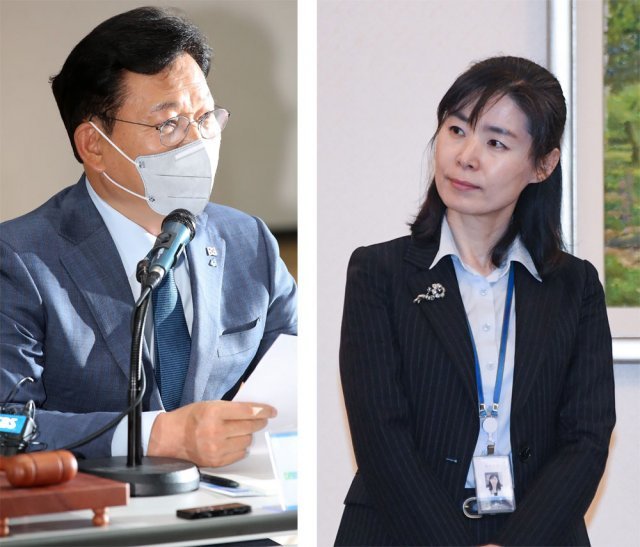 더불어민주당 송영길 대표가 28일 오전 대구 북구 대구삼성창조캠퍼스에서 열린 ‘민주당 대구시 예산정책협의회’에 참석해 발언하고 있다(왼쪽 사진). 이날 민주당 지도부는 청와대 인사검증 시스템을 공개적으로 비판하며 김외숙 대통령인사수석비서관(오른쪽 사진) 책임론을 제기했다. 청와대는 “인사수석이 모든 것을 책임질 문제는 아니다”라며 경질 요구에 선을 그었다. 대구=뉴스1·동아일보DB