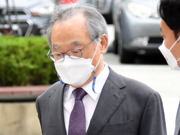 강제추행치상 혐의로 기소된 오거돈 전 부산시장이 29일 오전 부산 연제구 부산지방법원에서 열린 선고공판에 출석하고 있다./연합뉴스