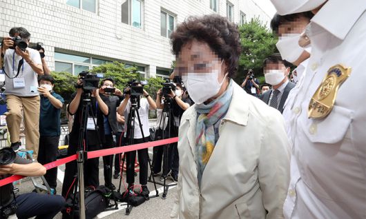 요양병원을 개설하고 요양급여를 편취한 혐의를 받는 윤석열 전 검찰총장의 장모 최모 씨가 2일 경기도 의정부시 가능동 의정부지방법원에서 열린 1심 선고공판에 출석하고 있다. 연합뉴스