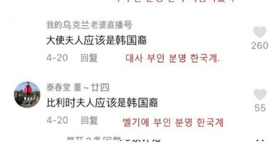 이런 가운데 벨기에 대사 아내가 ‘중국 출신'이라는 사실이 알려지자, 중국 온라인에서는 6일부터 “사실 벨기에 대사 아내는 한국계 중국인”라이는 주장이 별다른 근거 없이 확산 중이다.