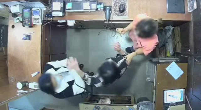 주한 벨기에대사 부인(왼쪽)이 4월 9일 서울 용산구의 한 옷가게에서 직원을 폭행하는 모습. CCTV 영상 캡처