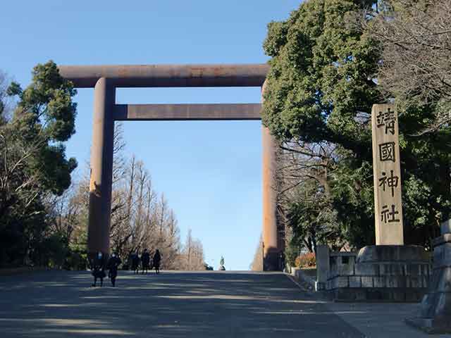 東京都千代田区九段北に鎮座。1869年(明治2)戊辰(ぼしん)戦争の戦没者を招魂鎮斎するために、明治新政府により創祀(そうし)された「東京招魂社」がおこり。のち各府藩県で設けられていた地方の招魂社が廃藩置県以後、国家的な統制を受けるに伴い、中央の招魂社としての東京招魂社も正式な神社として整備が進められ、79年には靖国神社と改称、別格官幣社に列格した。陸・海軍両者の所管になるが、その管理は創建の由来からおもに陸軍省があたった。別格官幣社の制は72年に始まるが、国家的な功績のあった人を祭神とすることを特色とした。当社の祭神はその後、53年(嘉永6)以降の国内の戦乱、また対外戦争である日清(にっしん)戦争、日露戦争、第一次世界大戦、満州事変、日中戦争、太平洋戦争などの戦没者(軍人、民間人ほか)を合祀し、現在約246万人(女性祭神約6万人)。例大祭(4月22日、10月18日)には天皇からの勅使が遣わされ、またその前夜には祭神としての合祀祭が行われる慣例である。国家との関係は、戦後は全面的に断たれたが、「靖国神社問題」として国家護持、首相の公式参拝、A級戦犯合祀問題など、神社の歴史的性格と国家、政府との関係をどう扱うか、未解決のままである。