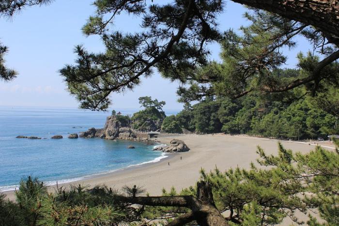 桂浜は浦戸湾の入り江に面した長さ500mほどの小さな砂浜で、大きく弧を描くように伸びる砂浜の美しさや坂本龍馬像があります