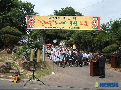 일제 말기 국민 애창곡 '찔레꽃'을 발표한 제주출신 가수 백난아(1992년 타계)의 노래비가 고향인 제주시 한림읍 명월리에 세워지고 28일 '찔레꽃 노래비 공원'이 개장됐다. /김재하기자 kjh@newsis.com >