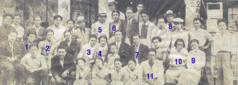 | <오케악극단의 모습>1.남인수 2.고복수 3.이화자 4.이난영 5.김해송 6.김정구 7.이철 8.손목인 9.이은파 10.장세정 11.김용호 |