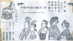 1905년, <황성신문>에 유성기 (축음기)를 선전하는 첫 광고에 이어 1913년에는 <매일신보>에 대대적인 선전이 시작된다.
