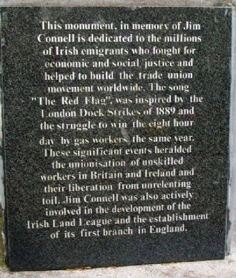 The Red Flag was not his only work. An early song of his was 'Workers of England', which Connell set to the tune of O'Donnell Abú.