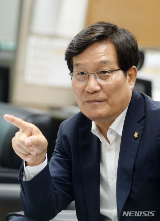 신동근 더불어민주당 최고위원 후보가 이달 7일 전북 전주시 전북도의회 기자실을 방문해 기자간담회를 열고 질의에 답변하고 있다. / 사진제공=뉴시스