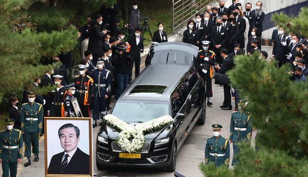 [서울=뉴시스] 홍효식 기자 = 30일 오전 서울 종로구 서울대병원 장례식장에서 고 노태우 전 대통령의 발인식이 엄수되고 있다. 2021.10.30. yesphoto@newsis.com[서울=뉴시스]