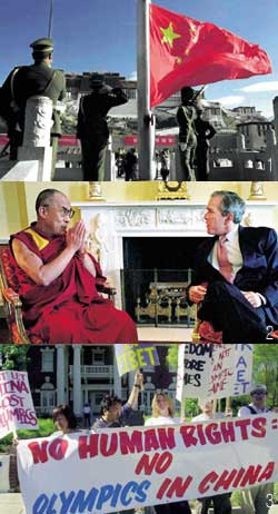 3. 2008년 베이징 올림픽 유치 반대 시위를 벌이고 있는 티베트 독립 지지자들.