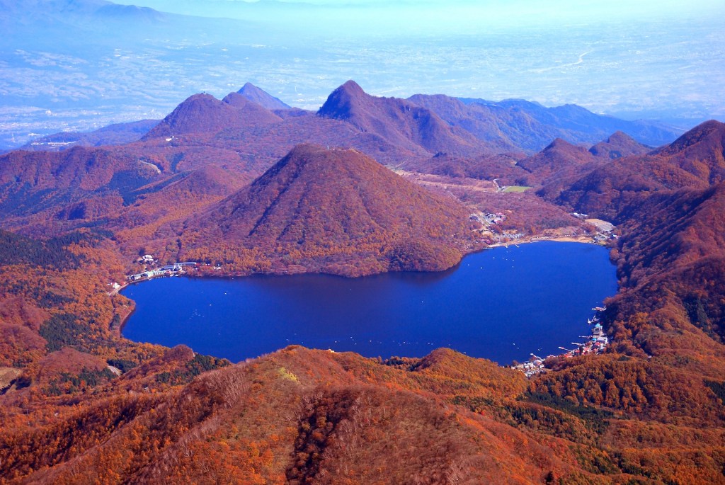群馬県高崎市榛名湖町、吾妻郡東吾妻町にまたがる周囲約5kmのカルデラ湖が榛名湖(はるなこ)。榛名山(はるなさん、標高1391m)の噴火の際、カルデラの一部に水がたまってでき湖で、湖面面積が1平方キロ以上の自然湖としては、中禅寺湖(栃木県日光市)に次いで、全国2位の高所の湖となっています。