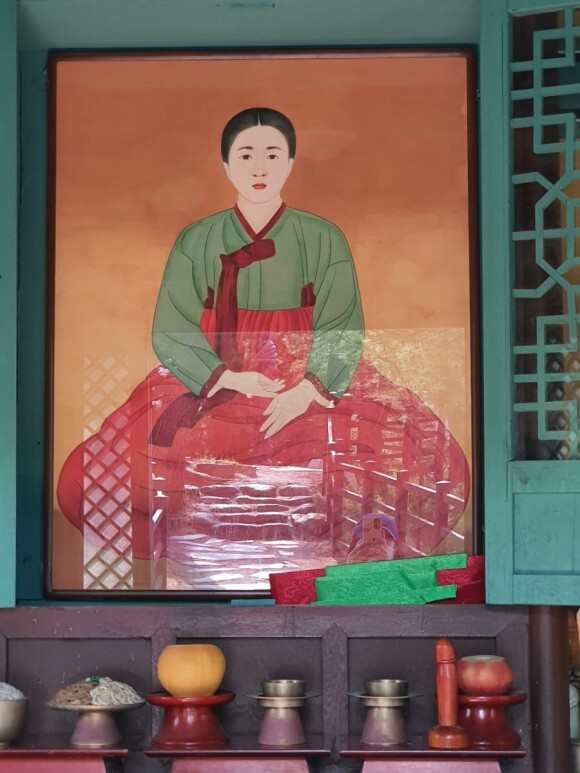해신당에 있는 초상화입니다. 초상화는 애랑이라는 처녀입니다. 이 마을에는 애랑과 관련된 슬픈 전설이 내려 오고 있는데요.