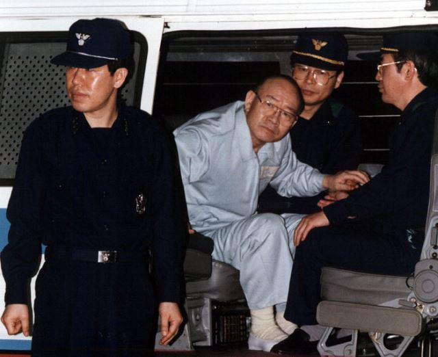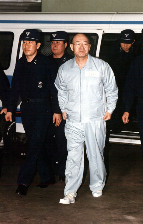 전두환 전 대통령이 1995년 12월 2일 오전 연희동 집앞에서 성명발표를 통해 검찰의 소환요구등 어떠한 조치에도 협조하지 않겠다고 말하고 있다. 전 전 대통령은 성명 발표 뒤 현충원을 참배한 후 고향인 경남 합천으로 내려갔다. 검찰은 영장을 발부 받아 12월 3일 새벽 합천군에서 전 전 대통령을 체포했다. 그는 이후 안양교도소에 수감돼 검찰 조사를 받았다. 국민일보DB