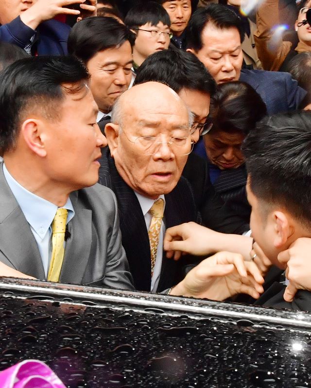 전두환 전 대통령이 지난 2019년 3월 11일 사자 명예훼손 혐의 재판을 마친 후 법정을 나서고 있다. 국민일보DB