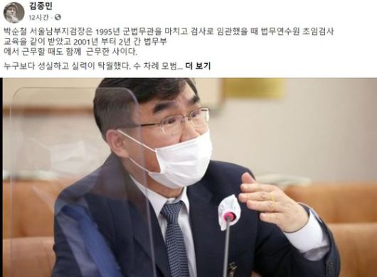 그러면서 그는 “박순철 서울남부지검장과 함께 근무한 적이 있어 잘 안다”며 “누구보다 성실하고 실력이 탁월했으며 검사 검찰총장 표창, 법무부장관 표창에 성균관대에서 금융수사 관련 박사학위도 받은 인재”라고 소개했다.
