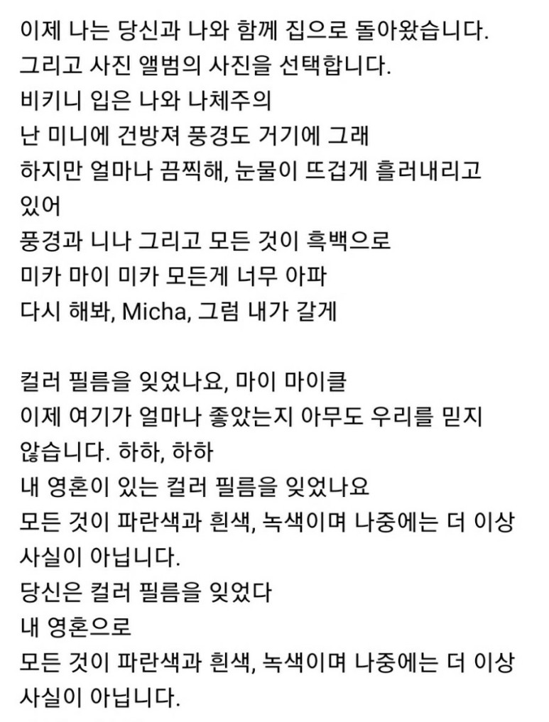 연인끼리 바닷가에 놀러갔는데 흑백필름을 가져와 아름다운 경치를 칼라에 담아야 한다고 투정하는 ᆢ