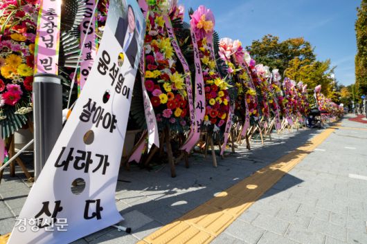 300개 넘는 윤석열 화환,