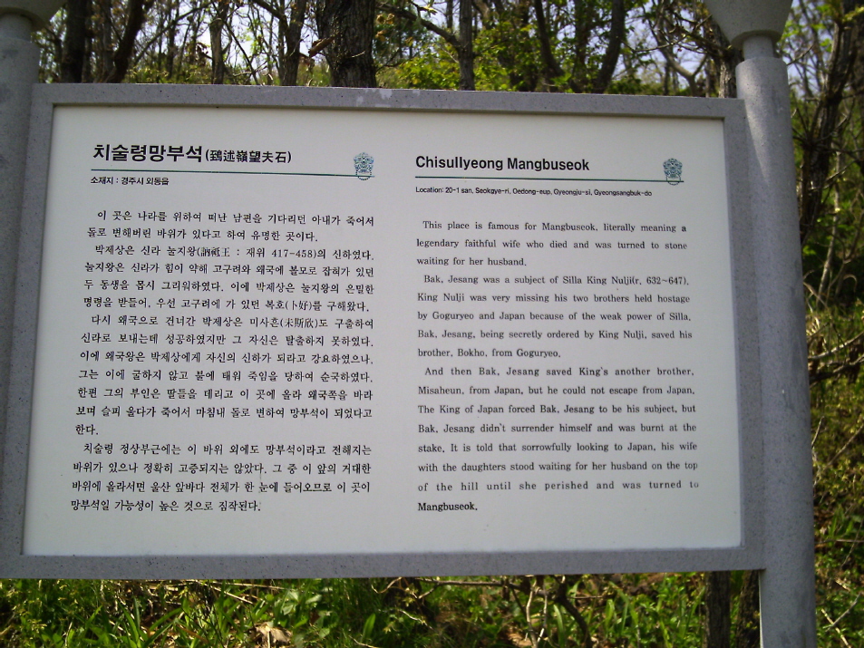 왜국을 바라보며 슬피 울다가 죽어서 마침내 돌로 변하여 바위가 되었다는데,