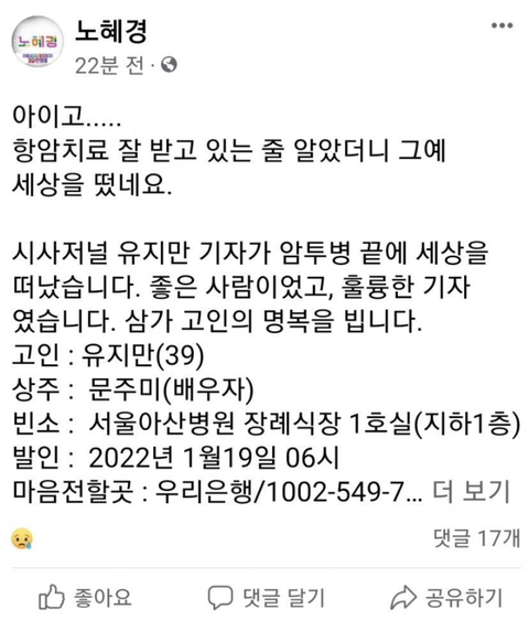 유지만 기자가 사망했다는 기사가 나오고 지금 온 커뮤니티는 난리가 났습니다.