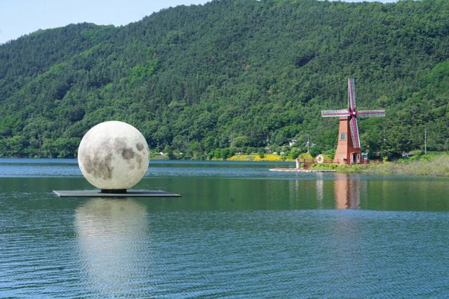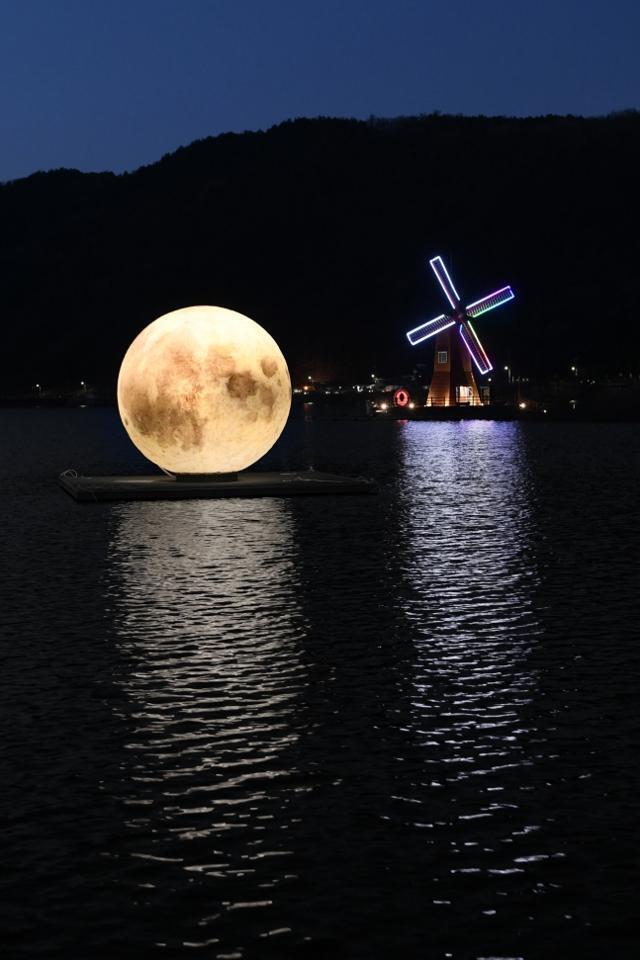 올해 또 하나의 ‘인증샷’ 배경이 생겼다. 저수지 한가운데의 직경 5m짜리 '보름달'이다. 밤에 보면 연못에 보름달이 떠 있는 것처럼 보인다. 보름달은 올해 2월 정월대보름 때 코로나19 극복을 위한 ‘희망의 인공달’이라는 이름도 얻었다.