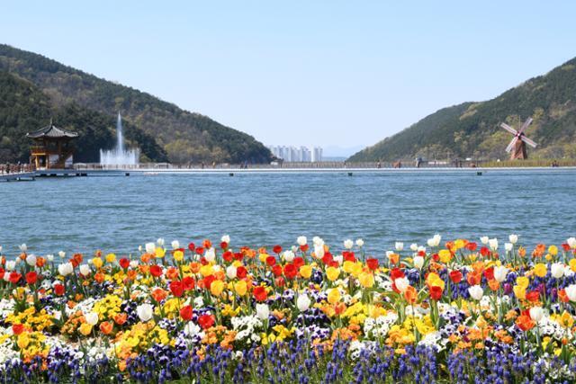 지난 봄, 송해공원 옥연지 부근에 튤립이 피어 있다. 달성군 제공