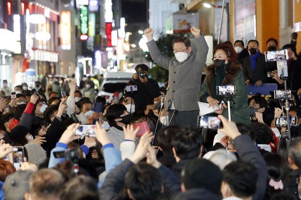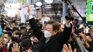 이재명 더불어민주당 대선 후보가 27일 광주 동구 '우다방' 충장로우체국 앞에서 지지를 호소하고 있다. /뉴스1