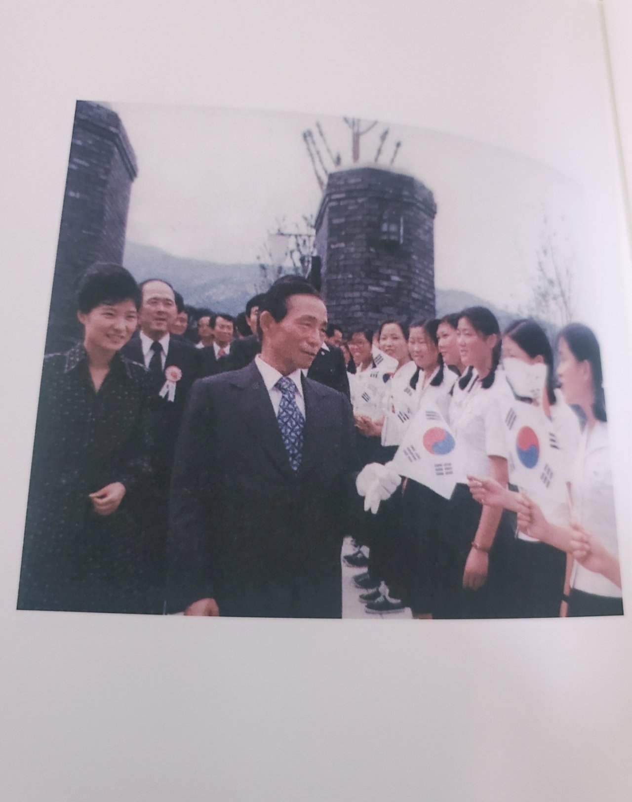 아버지 박정희 대통령과 밤 따기를 하다가 높은 곳에 올라가려는 딸을 위해 아버지가 긴 장대로 끌어주는 순간을 포착한 사진이다.